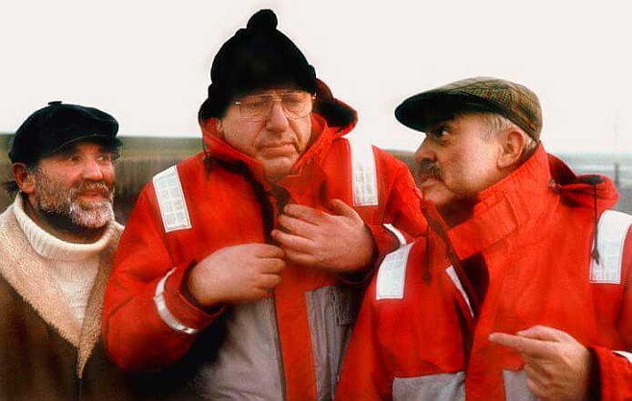 Was nicht bedeutet, dass dieser keine Highlights beinhaltet. Stoever und Brockmöller gehören noch nicht zu der Generation Tatort-Ermittler, die physisch stark eingebunden werden, die also in Aktion häufig verletzt werden oder in Gefahr geraten. Aber Manfred Krug im Meer, alle Achtung! Dazu muss man schon ein wenig robust sein, egal, wie man unter der sichtbaren Kleidung angezogen ist. Der Film ist sicher nicht im Winter gedreht worden, aber trotzdem bemerkenswert, wie Krug hier Einsatz zeigt. Und immer mit diesem sonor vorgetragenen Humor, über den sein Partner Brockmöller, also Charles Brauer, wirklich lachen muss, das ist stellenweise auch zu hören. Die beiden müssen nicht geführt werden, daher ist es im Prinzip gleich, wer die Regie innehat, sie kennen genau den Ton, der bei ihren Fans ankommt. Allerdings …