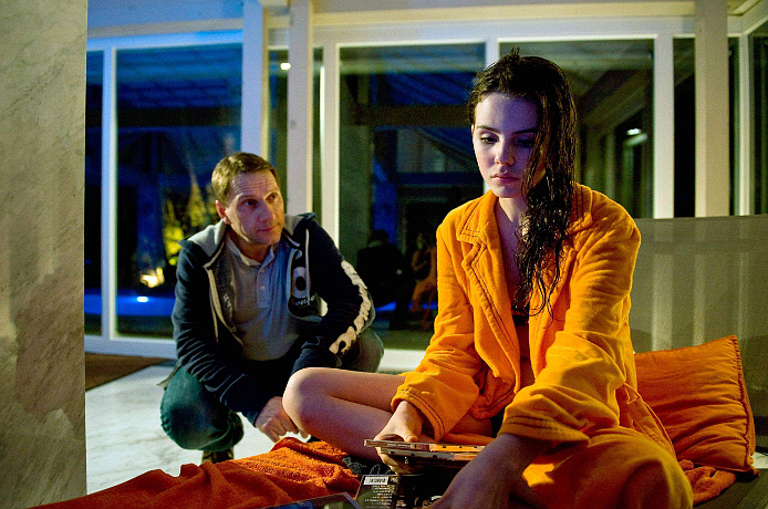 Genau eine solche Rolle zieht er sich in diesem Film auch an. Logisch ist das nicht unbedingt, da genau die im Mittelpunkt des Falles stehende Sarah ihn ja vorher schon als Polizist kennengelernt hat – der Drehbuchautor hat das spät, aber immerhin doch gemerkt, nämlich, als der Stiftungsvorstand Schöllhammer offenbar von ihr über dessen wirklichen Beruf informiert wird, während einer Pool-Party. Da konnte man nicht mehr das halbe Drehbuch rückwärts umschreiben, also hoffte man auf gnädige Aufnahme dieses wenig überzeugenden Handlungselementes.