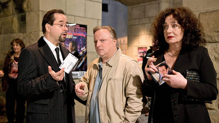 Der Kracher des heutigen Münster-Tatorts: Die Staatsanwältin als ausgeflippter König-Fan neben dem säuerlich grinsenden Thiel auf dem König-Konzert. Von WDR 4 wurden insgesamt 230 Karten verlost, um als Komparse in einer Konzertszene mitspielen zu können, woraufhin sich weit über 130.000 Fans beworben haben (Wikipedia).