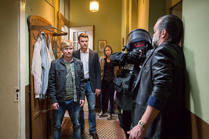Es liegt wieder am Konzept, dass das Gefühl der Austauschbarkeit dieses Mal noch stärker geworden ist. Wir haben die gewaltsam verjugendlichte Sprache des ersten Erfurt-Tatortes vor einem Jahr kritisiert, also können wir jetzt nicht das Verschwinden dieses lächerlichen Duktus ebenfalls kritisieren. Oder doch? Was man jetzt gemacht hat, ist wirklich bemerkenswert. Man hat die drei Ermittler erwachsener gemacht, indem man sie entindividualisiert hat. So wirken sie von allen Teams am meisten beamtenhaft, mit ganz kleinen Nuancen: Der groß gewachsene Friedrich Mücke als Kommissar Funck ist die natürliche Führungsperson, Schaffert (Maik Kramme) gehen schon mal die Sicherungen durch, vor allem im Vernehmungsraum, Grewel (Alina Levshin) ist im Denken die Schnellste der drei und lehnt sich am Weitesten aus dem Fenster, wenn es um Kompetenzüberschreitungen geht.