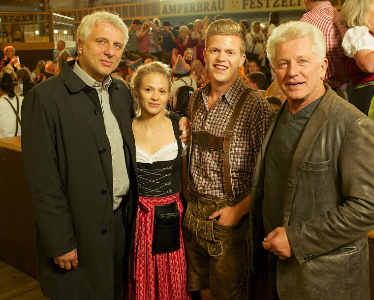 Eines muss man dem Film vorab zugute halten: Es ist ein enormer Aufwand, auf dem Oktoberfest so zu filmen, dass es realistisch wirkt. Immerhin musste man ein ganzes, großes Bierzelt mit Statisten besetzen, damit nicht echte Wiesnbesucher in jenem angeheiterten oder aggressiven Zustand, der im Film so schön ekelig gezeigt wird, blöd in die Kamera glotzen – oder zumindest, neben den Statisten und Komparsen und Kleindarstellern, das übrige Publikum anweisen. Und dieses große Schild „Ampler-Bräu“ ist vermutlich nicht digital eingearbeitet worden. Alles klasse gemacht, wirkt ziemlich echt, wie hier gefeiert, gegrölt, gesoffen wird. Man hat es in Wirklichkeit so gelöst, dass 200 Komparsen dabei sind, der Rest des 8500 Besucher fassenden Zeltes aber bei den Dreharbeiten leer war (Infos: Tatort Fans). Hat man nicht gemerkt, weil auch Szenen aus einem komplett gefüllten Zelt eingearbeitet sind.