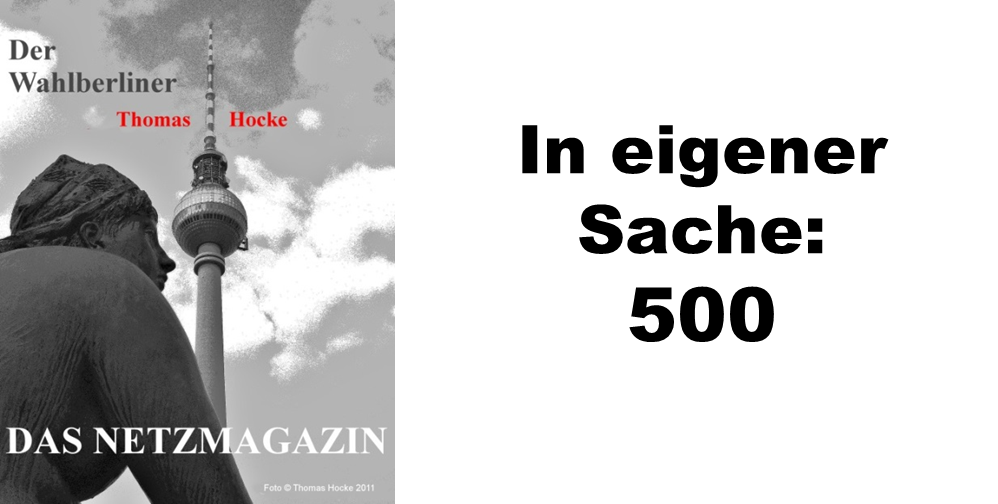 Zum Vergleich, der „alte“ oder „erste“ Wahlberliner, brachte es in sieben Jahren auf ca. 1450 Beiträge, „Rote Sonne 17“ in 15 Monaten auf ca. 380. Jeder kann sich ausrechnen, dass die Frequenz derzeit viel höher ist, aber auch beim ursprünglichen Wahlberliner und bei RS 17 war die Zahl der Beiträge in der Anfangszeit am höchsten. Wenn ich wieder mehr fiktional schreiben werde, muss ich die Artikelzahl zurücknehmen, sonst bin ich abends zwischen 18 und 24 Uhr – meine kreativste Phase – schon zu leergeschrieben. Gleichzeitig soll sich allerdings die Zahl der Zugriffe auf den Wahlberliner weiterhin tendenziell leicht steigern. Spannend für mich auch dies: Ob der Spagat gelingen wird.