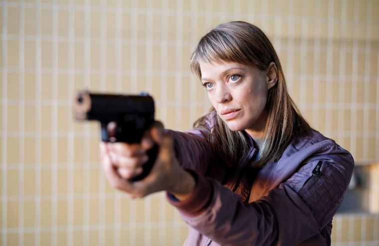 TOM: Soll ja nicht einfach, sondern gewollt konfrontativ sein. Und den Assi im Rollator mit dem Finger herbeischnipsen. Ich hab gedacht, ich seh nicht richtig. Angeblich kommt die Berlinger aus London zurück. Eines ist sicher, in England wäre sie keine fünfzehn Jahre durchgekommen, mit diesem Verhalten, schon gar nicht als Deutsche. Aber das ist nur eine von vielen Unglaubwürdigkeiten. Den Babybauch hast du schon erwähnt – und dann arretiert sie einen Verdächtigen im Alleingang und wird dabei sogar physisch.