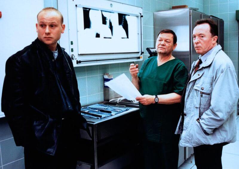 Vermutlich war „Bei Auftritt Mord“ auch einer der ersten MDR-Tatorte im Breitbildformat 16:9, aber er wirkt heute trotzdem dated. Der Mitteldeutsche Rundfunk war bei seinen Inszenierungen für die Reihe ja immer etwas hinter der Zeit, das hat sich erst allerjüngst geändert. Aber Ehrlicher und Kain sind zudem schrullige Typen, so richtig der DDR entsprungen, aber nicht entwachsen, und das lässt ebenso wie die Musik in diesem Film, wie die Aumfachung der Ballettdamen und Mathieu Carrière als Impressario, der gesamte Stil des Films ist nicht gerade zeitlos. Andere Filme aus der zweiten Hälfte der 1990er wirken viel moderner.