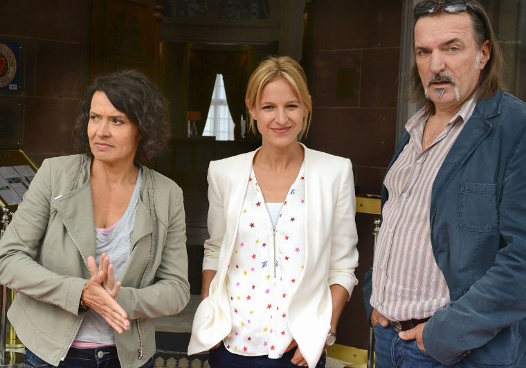 Aber die 5000 Euro-Masche, der Manager, der seine Roomserivce-Mitarbeiterinnen zur Prostitution anhält, die Damen, von denen man zunächst denkt, sie kommen aus Arabien, dann aber ist es wohl doch Indien oder Pakistan, was auch den englischen Akzent eher erklären würde, die ist zu rudimentär und dadurch unglaubwürdig, wenn auch politisch mindestens so hoch korrekt wie die Frauenquote. Schade, denn immerhin fußt der anfängliche Mord an einem Zimmermädchen vordergründig-kausal auf dieser Konstellation. Und wenn man behauptet, deutsche Frauen könnten diesen schwierigen Job kaum machen, dann sollte man oben am Geländern nicht eine Riege von Zimmermädchen auftreten lassen, die fast alle nicht-ethnisch aussehen – nach dem Mord. Vielleicht gab es in LU nicht genug passende Statistinnen, wir hätten von Berlin her locker aushelfen können. Aber das wäre ja auch wieder eine Art Menschenverschickung mit Unterbezahlungshautgout gewesen.