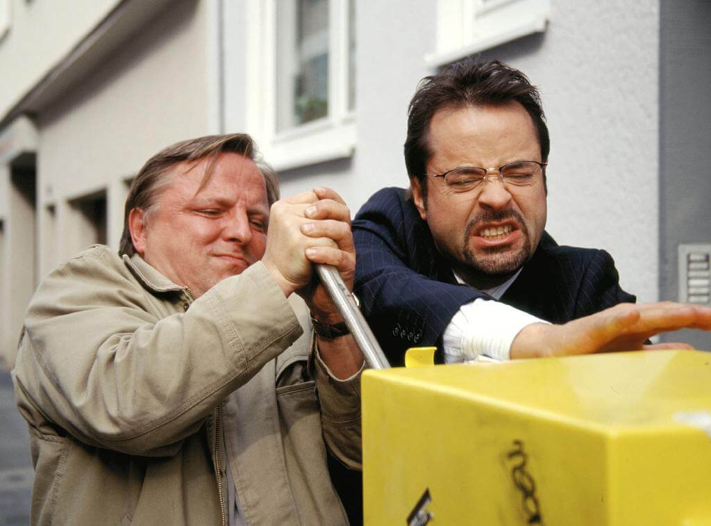 Einige Szenen haben Spielfilm-Format, die beste von allen ist wohl der Briefkasten-Gag, in dem Börne versucht, aus dem gelben Kasten ein Päckchen zu entnehmen und Thiel ihm letztlich noch dabei hilft. Dabei kommt zuerst Börne nicht frei, dann verliert er seine teure Schweizer Uhr – vermutlich für immer – in diesem Briefkasten.