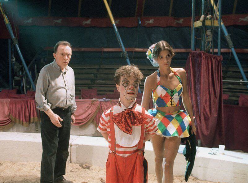 Wegen dieser Vorlektüre im Alter von zehn oder zwölf Jahren kam uns das Szenario in „Tanz auf dem Hochseil“ bekannt vor, auch wenn man das Personal reduziert hatte – aus Kostengründen sind sehr viel weniger Menschen zwischen den Wohnwagen unterwegs, als das bei einem wirklichen Zirkus der Fall ist und das hat den vorherrschenden Eindruck von Tristesse hinter Clownsmasken und jenseits bunter Showkostüme erhöht.