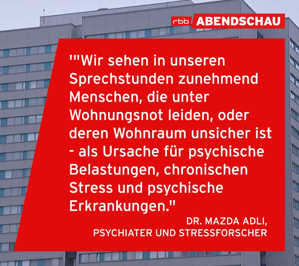 Die Wohnungsnot in Berlin hat so viele Aspekte, auch dieser hat uns nicht sehr überrascht: Dass existenzielle Sorgen wie die um die eigene Bleibe zu psychischen Problemen führen können. Das Gefühl von Ohnmacht spielt dabei meist eine große Rolle, ob Sorgen in einem beherrschbaren Rahmen bleiben oder krank machen. Die Mieter_innen fühlen sich dem Wahnsinn der Renditetreiber hilflos ausgeliefert, das ist es wohl vor allem, was die Zustände immer besorgniserregender werden lässt. Selbst jene, die (noch) nicht selbst betroffen sind, leiden (mit).