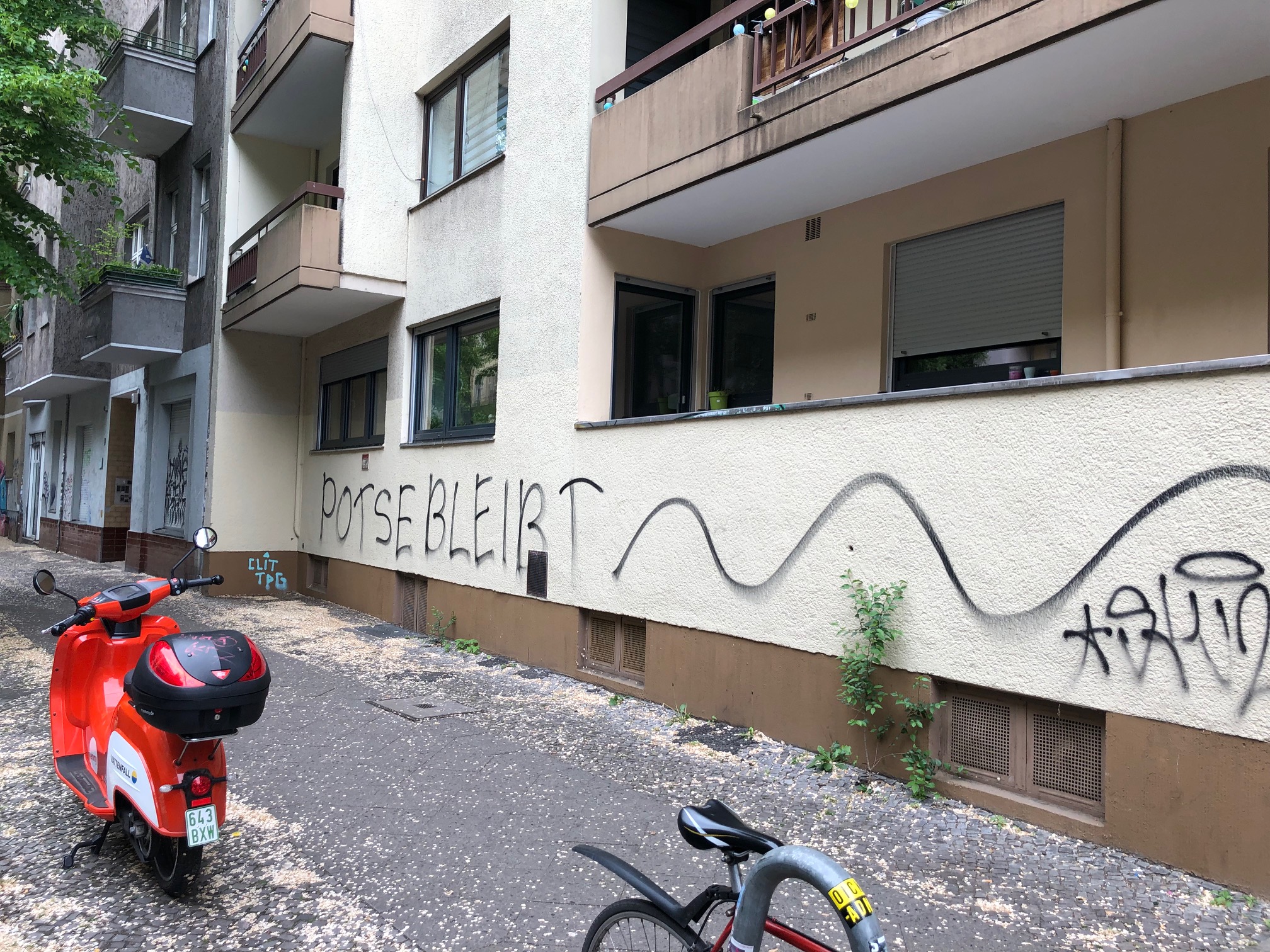 Aber auch unser heutiger Wohnbezirk ist vertreten: Potse bleibt. Genau. Potse ist ein autonomes Jugendzentrum in Schöneberg, das ebenfalls von Verdrängung bedroht ist ...