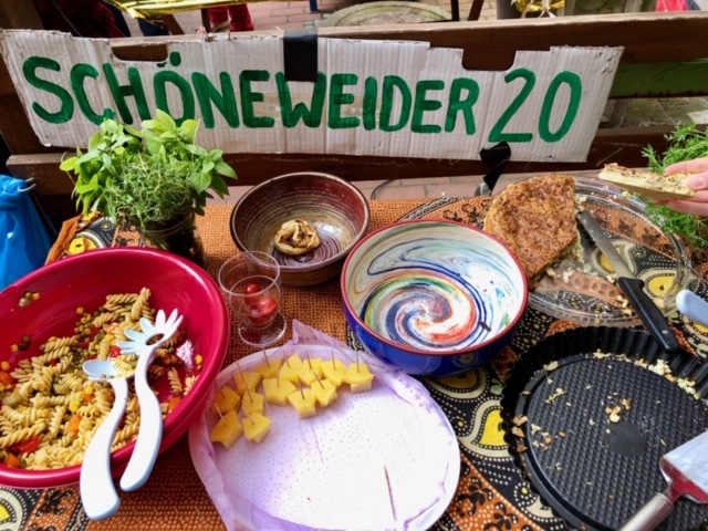 ... sein wir auf diesen Bildern und die Häppchen werden dann nicht mehr für Soliadaritätsbesucher umsonst angeboten werden. Offenbar haben wir Verwandte in der Schöneweider 20, der Nudelsalat belegt es.