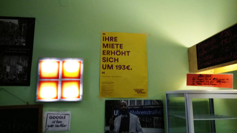 2019-06-06 Artikel 1 004 V K 7. Juni 2019 Return to: Der Wahlberliner vor Ort: „Die Häuser denen, die drin wohnen!“ 11. Mai bis 13. Juni 2019, Fotoausstellung im Regenbogen-Café in der Lausitzer Straße 22, Kreuzberg / #Mietenwahnsinn #Verdrängung #wirbleibenalle #besetzen #Regenbogenfabrik #Xberg #Widerstand #Besetzen #HäuserkampfVolle Auflösung (800 × 450) Image navigation Vorheriges Bild Nächstes Bild Man steht vor der Theke und wird gleich begrüßt von "Deutsche Wohnen enteignen". Damit klar ist, was zählt. Entdecke mehr von DER WAHLBERLINER Melde dich für ein Abonnement an, um die neuesten Beiträge per E-Mail zu erhalten. Gib deine E-Mail-Adresse ein ... Abonnieren Teilen mit:Tweet Klicken, um auf Bluesky zu teilen (Wird in neuem Fenster geöffnet) Bluesky Klicken, um auf WhatsApp zu teilen (Wird in neuem Fenster geöffnet) WhatsApp Auf Tumblr teilen Zum Teilen auf Mastodon klicken (Wird in neuem Fenster geöffnet) Mastodon Klicken, um einem Freund einen Link per E-Mail zu senden (Wird in neuem Fenster geöffnet) E-Mail Klicken zum Ausdrucken (Wird in neuem Fenster geöffnet) Drucken Gefällt mir Wird geladen …
