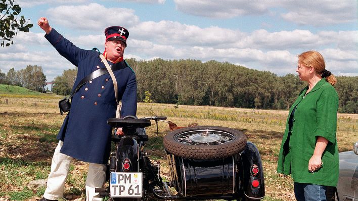 Es ist nicht zuletzt Jägers Spiel zu verdanken, dass der Film zum Ende hin etwas Berührendes hat. Man soll den Krieg nicht romantisch finden, auch, wenn er nur nachgestellt wird und die Hobbysoldaten werden immer wieder ironisiert, das von uns gewählte Titelbild lässt das recht gut erkennen. Doch es ist eine Geschichte von Liebe und Krieg und Verrat, die sie beim damaligen ORB, dem im RBB aufgegangenen Ostdeutschen Rundfunk Brandenburg, gemacht haben. Dadurch gibt es viele Szenen mit bunten Kostümen und diese Szenen sind sehr gut bebildert. Erstaunlich gut, wenn man bedenkt, dass Kostümfilme in Deutschland nicht gerade zum Alltag einer Krimireihe rechnen. Außerdem kennen wir die Gegend recht gut, in der gefilmt wurde, vor allem um Diedersdorf herum, und es ist nun mal so, dass Wiedererkennen die Bindung stärkt. Das muss nicht heißen, dass diese Stärkung in die positive Richtung geht, aber bei uns war das so.