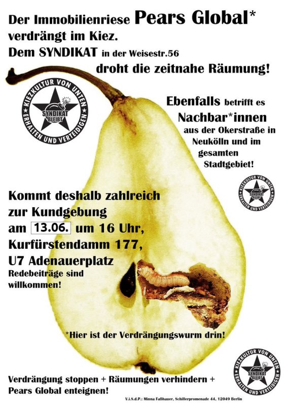Weiter an der Aufweichung der Birne arbeiten: Bitte alle mit dem Syndikat am 13.06.19 um 16 Uhr zum Kudamm 177, wo PEARS GLOBAL residiert! / @derjochen @SyndiCAT44 @Syndikat44 @KiezinAktion @nk_12049 @KiezinAktion @HeimatNeue @tagesspiegel @DoebertSteffen / #b1306 #PEARSGLOBAL #drugstorebleibt #Syndikatbleibt #wirbleibenalle #mietenwahnsinn