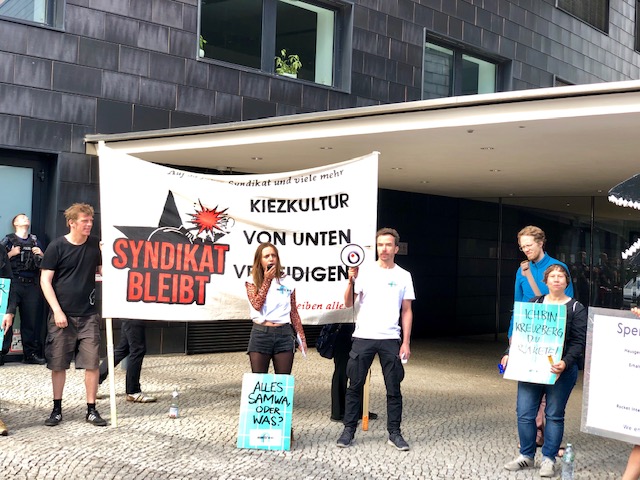 Danach wurde hart gearbeitet, bis die Ankündigung zum Rocket-Internet-Besuch am 3. Juli kam, die Hausinitiative beteiligte sich in der Zeit häufig und solidarisch an den Aktionen anderer, hier nur stellvertretend: