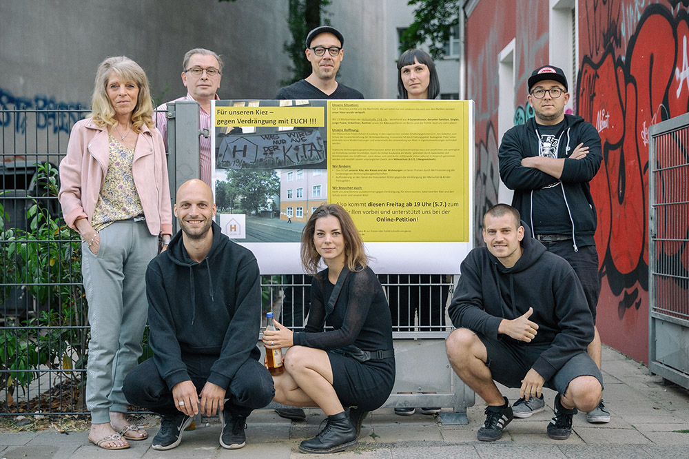Um unser Haus vor diesem Schicksal zu bewahren, gehen wir als Hausgemeinschaft und im Schulterschluss mit anderen betroffenen Hausgemeinschaften des Kiezes auf die Straße.