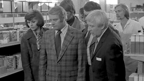 Mit der Verkäuferin, die abends die Waren nicht verschließt, geht auch Arndt hart ins Gericht. Die Verfehlung wird hier nicht nur für alle Zuschauer als gut zu verstehende Warnung gezeigt, sondern auch kommentiert und das macht für uns auch die Figur Arndt und ihre Darstellerin so interessant: Sie kann sehr einnehmend sein, aber auch einen Ton und einen Blick drauf haben, da läuft’s einem schon mal den Rücken runter und man empfindet sie geeigneten Charakter für Tätigkeiten, die in Diktaturen hoch im Kurs stehen. Interessant weiterhin: Dass nur von „unserem“, nicht von sozialistischem Eigentum die Rede ist, das entwendet wird. Das ist eigentlich sehr trickreich, denn was sozialistisches Eigentum ist, wurde in der DDR so definiert, dass es gerade nicht „uns“ gehört.