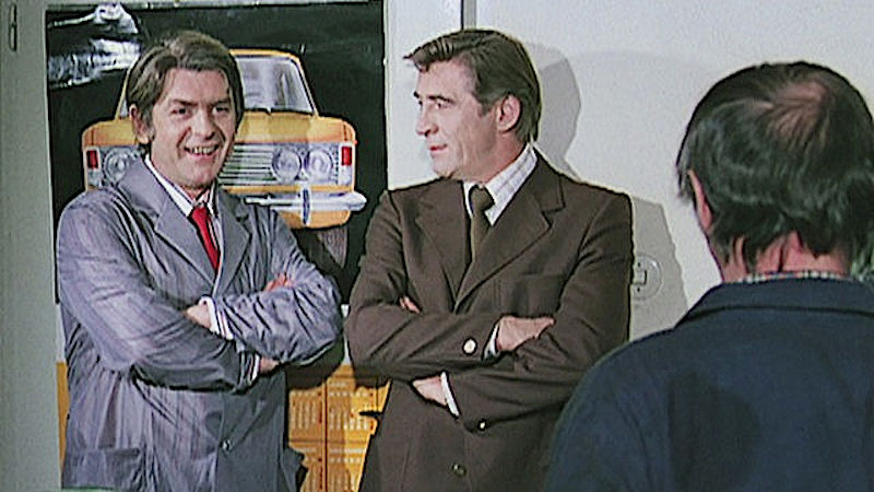 Die dargestellte Werkstatt aber führt in erster Linie die Reparatur von Polski-Fiats durch, diese kosteten 1973 zwischen 22.000 und 23.500 Mark, waren also ebenfalls nur für gehobene Einkommensklassen erschwinglich. Wir erfahren nicht, was Menschen wie Ratzek beruflich machen, ein schickes Haus und eine recht auffallend modisch dargestellte Frau hat er jedenfalls.