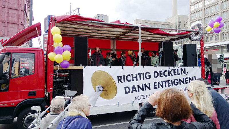 Schön war das Wetter nicht. Günstig war der Termin nicht. Die einzige Demo diesem Tag war „Richtig deckeln, dann enteignen“ nicht. Trotzdem: Etwa zweitausend Menschen besuchten die Auftaktveranstaltung auf dem Alexanderplatz, im Laufe der Demonstration kamen immer mehr Teilnehmende hinzu, die Veranstalter gehen von 4.000 bis 5.000 Personen aus, die gestern für einen besseren Mietendeckel und für die Enteignung von privaten Wohnkonzernen demonstriert haben.