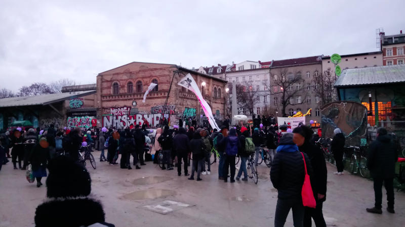 Wir hatten es gestern vom Winter-Hoffest in der Mariannenstraße nicht weit zur Demo für den Erhalt der Meuterei und der anderen bedrängten Projekte, die im Görlitzer Park von Kreuzberg gestartet wurde und über den Kotti zur Reichenberger Straße 58 ging, wo die Kiezkneipe Meuterei ihre Räume hat. Das Update ist dem Flyer gewidmet, den man uns zugesteckt hat und den wir gestern Abend erst lesen konnten (09.12.19).
