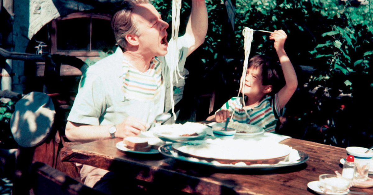 Das gilt auch für „Wenn der Vater mit dem Sohne“. Im Grunde wird eine Kriegsfolge behandelt, nämlich, dass Kinder im Krieg, nach dem Krieg, von ihren Eltern getrennt werden und lange Zeit nicht zusammenfinden. Dass seltsame Konstellationen wie die nominelle Pflegemutter Frau Biermann (Fita Benkhoff), der Bezugsperson-Pflegevater Teddy Lemke und der kleine Oliver Grimm zusammenfinden, dazu noch die eine oder andere skurrile Varieté-Figur. Welch eine kleine Welt voller liebenswerter Gestalten – und dann eine überraschende Einsicht.