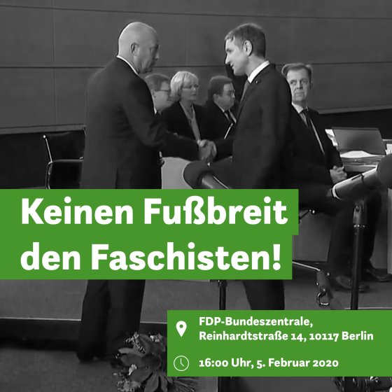 UPDATE / AUFRUF! FDP, CDU, AfD wählen FDP-Ministerpräsident in Thüringen: BITTE ALLE ZUR SPONTANDEMO vor der FDP-Zentrale 05.02.2020, 18 Uhr, Reinhardtstr. 14, Nähe Bahnhof Friedrichstraße #b0502 #NieMehrCDU #niemalsFDP #fckAfD #FCKNZS