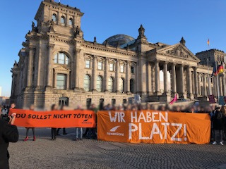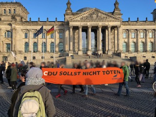 Darum gehen wir auf die Straße: am Samstag, den 8. Februar, um 12 Uhr auf dem Platz der Republik. Dort, gegenüber dem Kanzleramt, zeigen wir der Spitze der CDU, was wir von ihrem Duckmäusertum halten. Ein solcher Tabubruch darf sich niemals wiederholen! Vom Kanzleramt ziehen wir weiter zum Auswärtigen Amt, wo wir um 14 Uhr die Demonstration der Seebrücke unterstützen: für eine Politik, die sich nicht nach rechts treiben lässt, und für die Aufnahme von Geflüchteten aus den völlig überfüllten Lagern auf den griechischen Inseln.