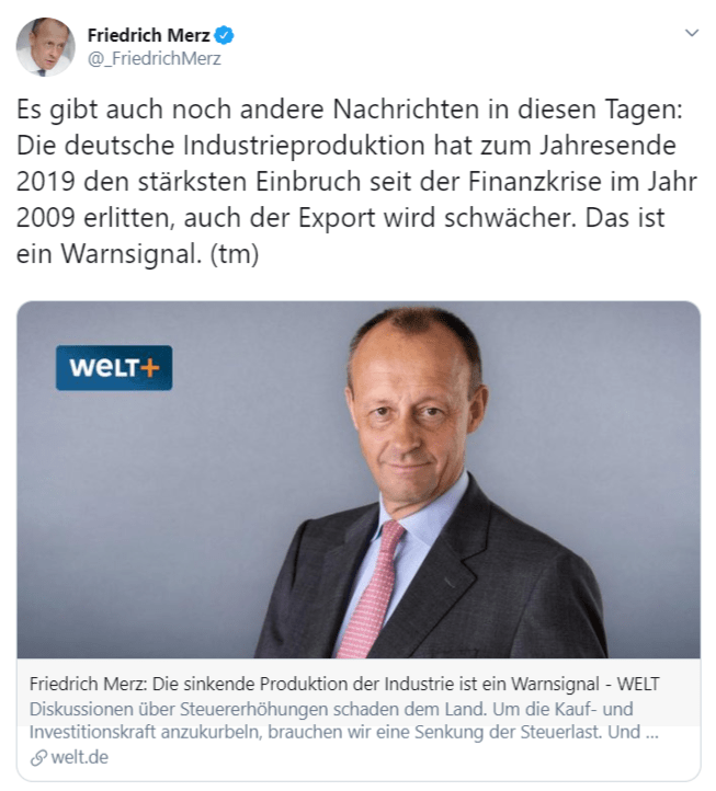 Dabei gibt Merz selbst zu, dass noch keine Rezessionsphase eingetreten ist.