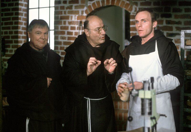 Heute wären die im Film durchaus rüstigen Männer, sofern sie noch leben, verwelkte Relikte der unguten Vergangenheit und nicht mehr fähig, einander zu beobachten, Ränke zu schmieden oder andere zu manipulieren oder gar per gut gezieltem Messerstich hinzumorden. Weil diese Wehrhaftigkeit vermutlich nicht mehr vorhanden wäre, käme es nicht dazu, dass Hauptkommissar Paul Stoever, so er denn noch ermitteln würde, als Bruder Paul ins Kloster eintritt und schon aufgrund seiner Haartracht so wirkt, als habe er immer dort gelebt – nicht nur sein Co-Ermittler Peter Brockmöller sieht das so und drückt es aus, auch wir finden, Bruder Paul ist eine der besten Figuren, die wir von Manfred Krug bisher gesehen haben.