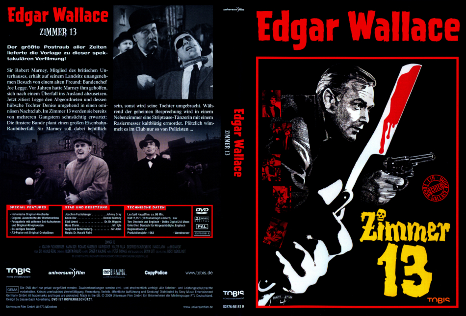 - „Zimmer 13“ ist der einzige Reinl-Film der Reihe, der oben nicht erwähnt wird, aber er ist wichtig, weil er vom Schema deutlich in Richtung Dramatik abweicht, weniger gruselig ist, aber nicht weniger spannend als die anderen, wie eine zeitgenössische Kritik es formuliert. Gäbe es den Einsatz von Eddi Arent nicht, wäre der Film sogar komplett humorfrei. Es gibt keine Dialog- oder Situationskomik außerhalb der Sphäre des Dr. Higgins. Die Handlung ist nicht die beste, die für einen Wallace-Film konstruiert wurde, weil zwei Ebenen, die Rasiermessermorde und der Postzugraub, nicht optimal miteinander verknüpft sind.
