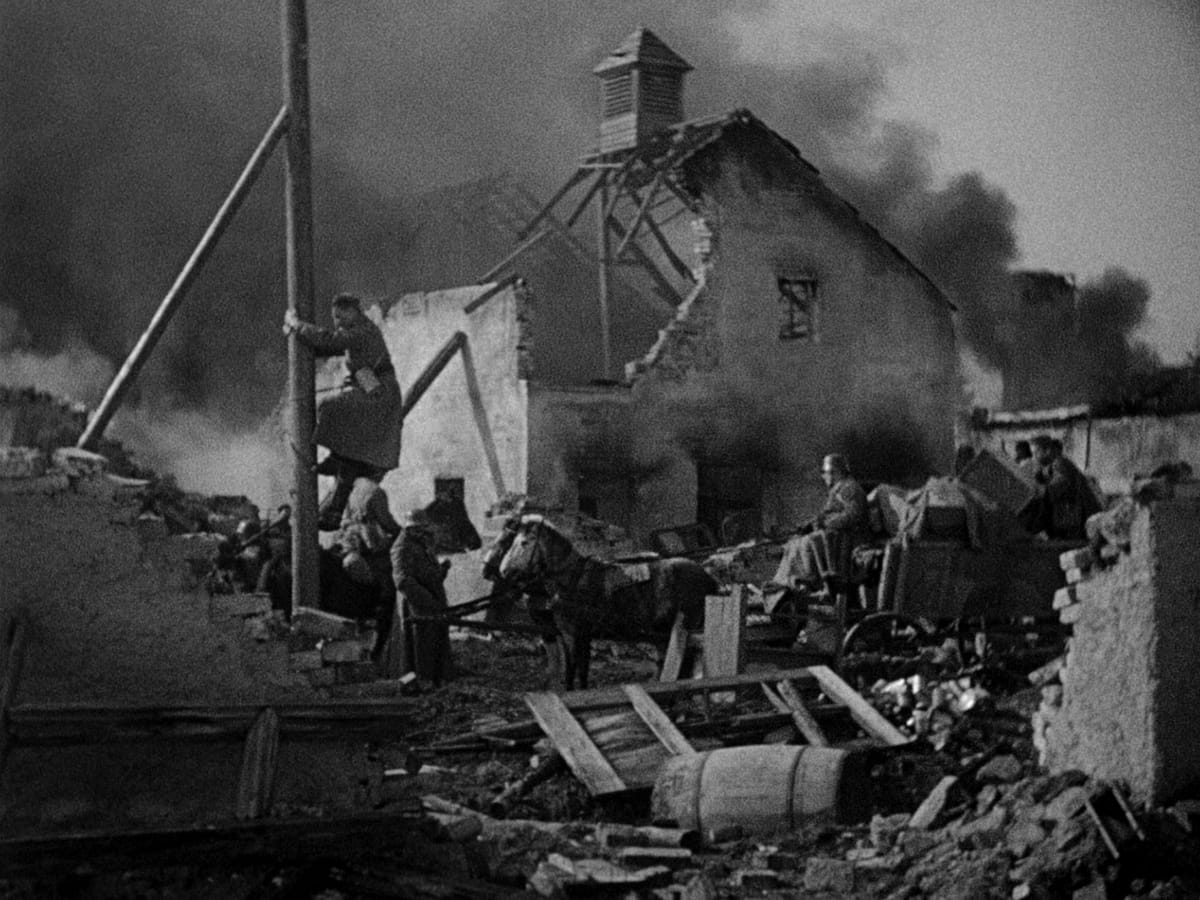 Ich habe dies schon dem fantastischen „Wege zum Ruhm“ zugeschrieben, obwohl auch er nicht frei davon ist, Soldatentum als solches auch mit positiven Attributen auszustatten. Die meisten Antikriegsfilme haben für mich ein Grundproblem, nein, sogar zwei: Das eine ist, dass vor allem US-Filme doch immer wieder sehr in Gewalt schwelgen und sich durch ihre Bildsprache verraten, die eben nicht das Abscheuliche allein in den Vordergrund stellt, sondern auch die Faszination für Gewalt nicht leugnen können. Damit einher gehen positive Figuren im Krieg, welche die Identifikation des Zuschauers erreichen sollen, und zwar nicht aufgrund ihrer bedauernswerten Schicksale, sondern ihres besonders hervorzuhebenden Verhaltens im Krieg. Oft werden sie von bösen Vorgesetzten und Politikern in sinnlose Abenteuer geschickt. Das trifft für den gesamten Ersten Weltkrieg natürlich auch zu, und besonders für jene Frontsoldaten, und sie sind vielleicht weniger selbst daran schuld, als Karl, einer der vier von der Infanterie, im Moment seines Todes glaubt. Aber sie sind bei Pabst nicht mit besonderen Fähigkeiten ausgestattet, kämpfen nicht besser als ihre Gegner, die Franzosen, sind der zunehmenden materiellen Überlegenheit der Alliierten und deren richtiger Entscheidung, auf Tanks zu setzen, 1918 beinahe hilflos ausgeliefert, wie man in den letzten Kampfszenen gut erkennen kann.