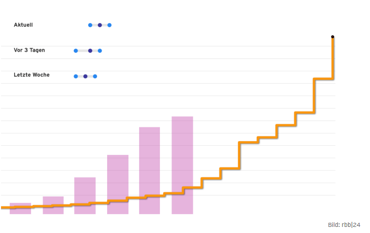Die heutigen Zahlen sind logischerweise noch nicht komplett und werden am Abend vermutlich einen neuen Höchststand an neuen Infektionen erbringen.