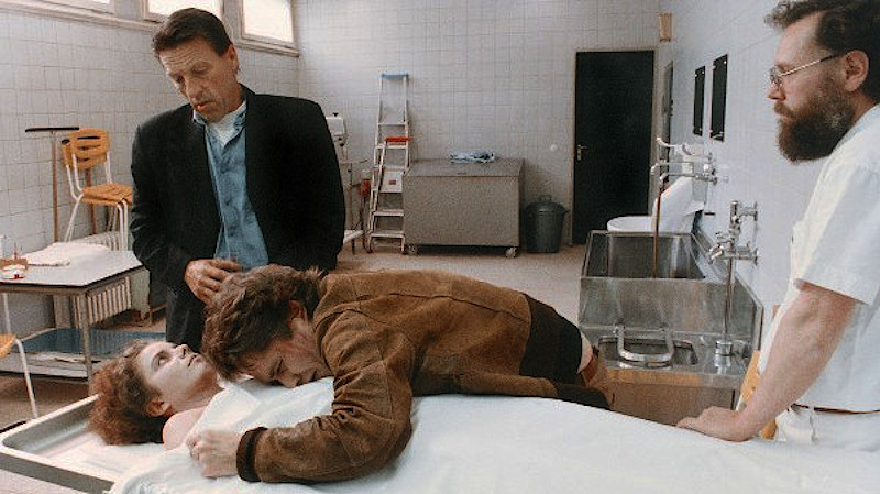 Zu diesen Darstellungen passt, dass der Film recht exploitativ gestaltet ist. Wir sehen zwei Frauen mehr oder weniger unbekleidet und einen misslungenen Akt, der sicher zu den Höhe- oder Tiefpunkten, je nachdem, ob man das Ganze von der humorvollen Seite betrachtet oder nicht, des kurzen Ausschnitts aus eine kurzen Frauenleben zählt, den wir hier gezeigt bekommen. Der an diesem Akt beteiligte Gastwirtsohn Norbert (Frank Matthus) ist vermutlich zusammen mit seiner Mutter das krasseste Figurenpaar unter vielen krassen Figuren – vor allem wegen seines herzhaft monotonen Klavierspiels. Er soll mit Rolf in eine Klasse gegangen sein. Wir wollten schon schreiben, Quatsch, sieht jeder, dass die beiden altersmäßig viel zu unterschiedlich sind. Stimmt aber nur bedingt, denn Michaelis ist 1961, Matthus 1964 geboren. Aber dass vor allem Michaelis deutlich älter ist als im Rollenprofil angegeben (30, nicht 20), das ist in der Tat sichtbar, während Matthus wesentlich jünger wirkt. Aber bei so vielen Seltsamkeiten wie in diesem Film muss man aufpassen, dass man sich nicht jede Abweichung vom Realismus zu breit auswalzt, denn solche kommen in vielen Filmen vor, die man deshalb nicht gleich als misslungen ansieht.