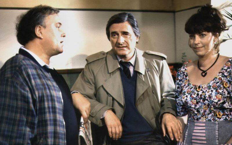 Nachdem schnell klar ist, wer den Oberst umgebracht hat und sich damit ein Howcatchem entwickelt, war ich im Verlauf immer mehr davon überzeugt, dass es ein dunkles Geheimnis aus dem Krieg ist, welches den Oberst und seinen einstigen Fahrer verbindet und es Letzterem unmöglich macht, ein eigenständiges Leben zu entwickeln; sich von den dominanten Adeligen zu lösen. Heute würde man das wohl so konstruieren – wenn man es noch könnte, denn die letzte Kriegsgeneration, diejenigen, die aktiv beteiligt waren, ist nunmehr weitgehend abgetreten. Schade eigentlich, denn sie war doch sehr spannend, wie man auch diesem Film entnehmen kann. Jüngeren und in heutigen Filmen, die in der Gegenwart spielen, gezeigten Figuren kann man keine so prgnanten Biografien mehr unterlegen, die Menschen sind vor dem Werden der BRD geprägt worden. Man könnte es mit Personen aus den nicht mehr so neuen Bundesländern wiederholen, und manchmal wird diese Möglichkeit auch für Tatorte genutzt, aber dann eher auf eine sehr ernste, melancholische, traurige Art, die „Gegenspieler“ ganz frem ist. Eine gewisse gesellschaftliche Verfestigung zeigt auch dieser Tatort, eine Art von unterschiedlich ausgerichteter Rückwärtsgewandtheit in die 1950er oder in die Zeit des Zweiten Weltkrieges, aber die Bundesrepublik von 1987 wirkt eher so, wie ich sie selbst wahrgenommen habe, nämlich als eine Zeit relativer Sicherheit, die den ironischen Rückblick durchaus erlaubt, und nicht, wie in vielen anderen Tatorten der Zeit, eher langweilig und so, als würde man auf eine große Veränderung warten – die auch bald kam.