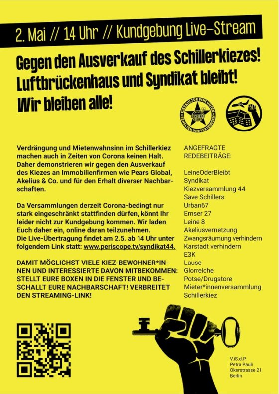 TL #Housing 10: Gegen den Ausverkauf des Schillerkiezes! Lufbrückenhaus und Syndikat bleiben! #Mietenwahnsinn #WohnenistMenschenrecht #wirbleibenalle #Berlin #Neukoelln #Neukölln #R2G #Schillerkiez #Syndikat #LeineOderbleibt #Corona #COVID19 #CoronaVirusDE #Lockerungen