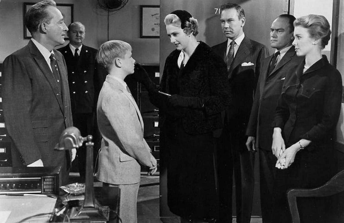 Wir erinnern uns. Zwei Frauen beanspruchen die Mutterschaft für ein Kind. König Salomon erklärt, er sehe angesichts unklarer Beweislage keine andere Möglichkeit, als das Kind zu teilen. Wir erinnern uns wieder: Zu Salomons Zeiten gab es noch keine DNA-Tests, 1957 ebenfalls nicht, aber da geht es ja auch nicht darum, wer die Mutter von Ted ist. Das ist eindeutig Gwen, die geschiedene Mrs. Carleton.