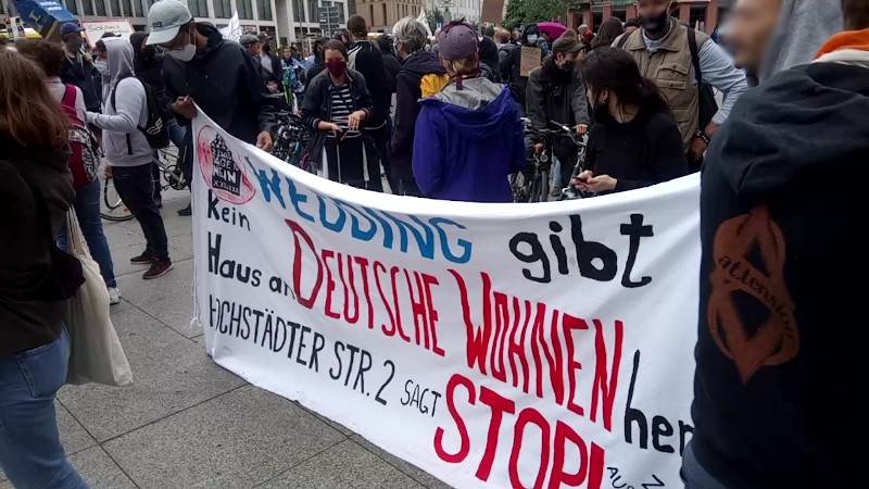 „(…) Während Kneipen schließen und Betriebe die Produktion drosseln mussten, wechselte die Miete in den meisten Fällen weiterhin krisensicher zum Monatsanfang das Konto. Das »Bündnis gegen Verdrängung und Mietenwahnsinn« will am Samstag auch dafür demonstrieren, dass Vermieter an den Kosten der Pandemie beteiligt werden„, leitet der Artikel ein, und, speziell auf den Startpunkt Wedding bezogen: