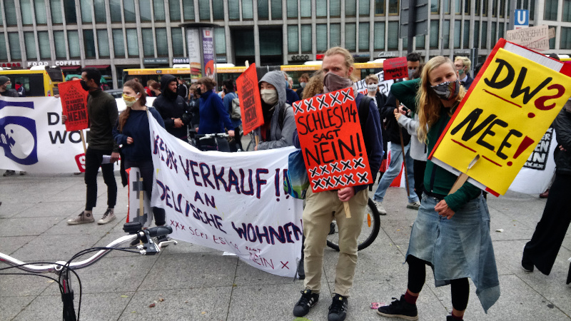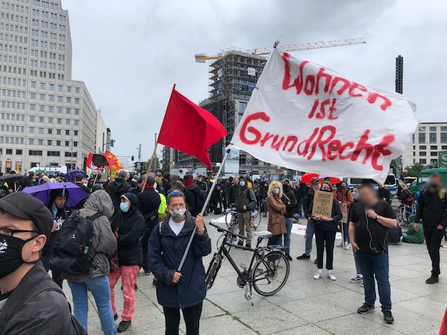 Auf der Tagesordnung für den morgigen Protest steht selbstverständlich auch die Enteignung und Vergesellschaftung Wohnungskonzernen, die durch Renditeabschöpfung das Wohnen für ihre Mieter*innen unnötig teuer machen, in Berlin wird dieser Protest repräsentiert durch die Initiative „Deutsche Wohnen & Co. enteignen“ (Timeline-Beiträge).
