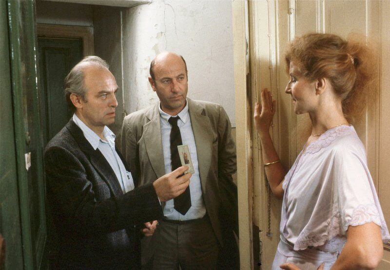 Dem Mädchen Rosi haben wir aber eine schöne Abendessen-Szene mit Paul zu verdanken, der trotz seiner Nase ein ladies man ist, da kann der neue Kollege nur neidisch sein – überhaupt ist Brockmöller hier noch ganz deutlich als nachrangig und auch weniger pfiffig als Stoever dargestellt und es ist faszinierend zu sehen, wie später aus den beiden ein bezüglich der kriminalistischen Intelligenz beinahe gleichwertiges Duo wurde, das außerdem durch seine musikalischen Ambitionen akzentuiert war. Der etwas durchsetzungsfähigere Charakter blieb aber bis zum Schluss der kantige Paul, Peter hingegen entwickelte sich zu dem Typ mit dem sozialen Gewissen. Auch bezüglich der Optik drifteten die beiden immer weiter auseinander. Stoever wurde bunter, aber blieb beim Anzug, Brockmöller hatte eine Lederjacke und eine Schiebermütze mit sozialdemokratischem Schnitt zu tragen.