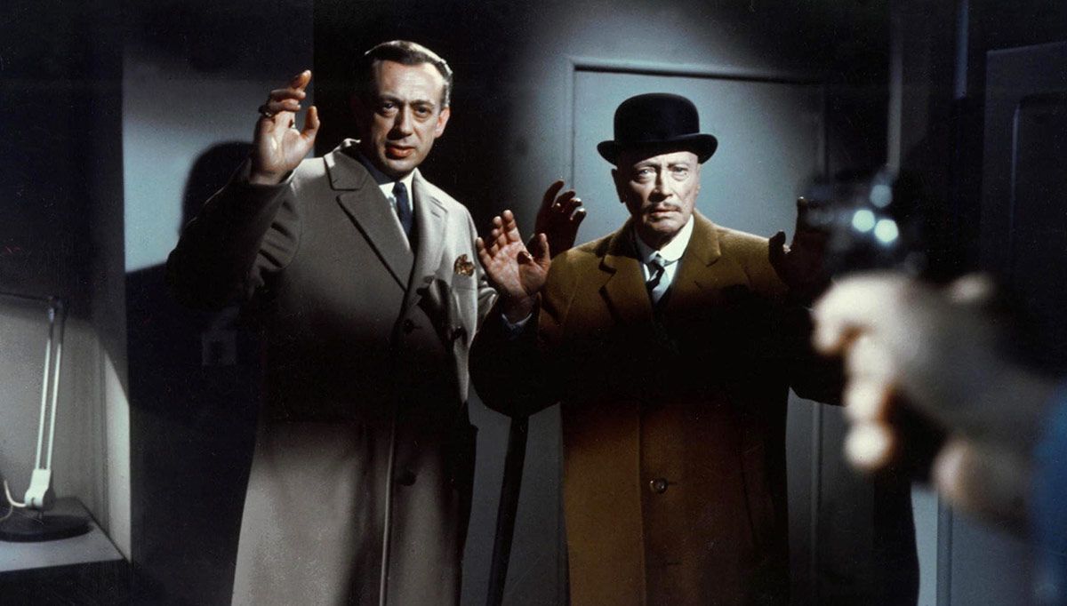 Das hat sicher auch damit zu tun, dass diese Filme ein Tummeplatz für schräge Vögel bzw. Figuren sind und der skurrile Humor gelingt auch ganz gut – die deutschspießigen Polizisten ankern zwar die Plots, aber sie wirken eben in diesem Umfeld meist etwas zu bemüht. Mit einer Ausnahme: Siegfried Schürenberg als Sir John von Scotland Yard. Er passt in der Rolle, die er immer mit Übertreibung und Applomb spielt, gut ins Szenario. Allerdings ist er in „Der Mann mit dem Glasauge nicht dabei“, vielmehr heißt der Chef nun Sir Arthur und wird – nicht von Artur Brauner, sondern von Hubert von Meyerinck gespielt. Den finde ich schon auch urig, aber vom Gepräge viel zu deutsch für einen Scotland-Yard-Chef.