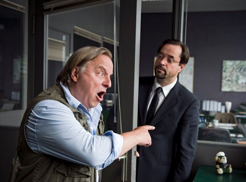 Aber dieses Geschiebe ohne Vorwärtsbewegung, ohne Dynamik – nein. Das ist Hasenfuß-Komik, die auf Nummer sicher gehen will, jedoch den Zuschauer je nach Temperament nervt oder einschläfert. Vaddern muss leider häufig für diese Art von Hasenfuß-Komik herhalten, weil seine Figur ja schon so herrlich subversiv ist, dass die Macher von Münster meinen, es reicht, sich an dem Mann zu ergötzen und vor allem daran, dass der Alte der Sponti und Kiffer ist und der Junge, der sich vom Vater abgesetzt hat, der Konservative, der Ordnungshüter – wie man am Ende auch in der (letzten) Spargelszene sieht, aber da ist Boerne der Widerpart und es funktioniert.