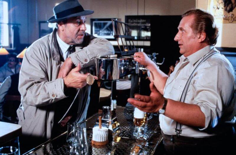 Das geht auch deshalb ganz gut, weil wir nicht allzu viel über die Ermittlungsarbeit von Kommissar Franz Markowitz und deren Logik befinden müssen – sie ist so präsent und gleichzeitig rudimentär, dass man nur sagen kann: Wo Arschlöcher keine Geständnisse ablegen, sondern sich von ihren Anwälten aus jeder Vernehmungslage befreien lassen, hat der Ermittler ein Problem. Das löst sich dann nicht mehr wirklich auf, das Ende ist trotz Rückblende nur eine Vermutung. Da aber auch der vermutliche Täter stirbt und am Ende die Besitzverhältnisse in der Oranienburger Straße wieder ins Lot zu kommen scheinen, ist die knackige Kombinatorik nicht im Zentrum des Films – und schon gar nicht die DNA-Analyse, die jedoch in anderem Zusammenhang dem damals noch nicht so kundigen Publikum erklärt wird. Was sonst erklärt wird und wie der historische Trichter sich anhand von drei Jahreszahlen ausnimmt, klärt sich in der -> Rezension.