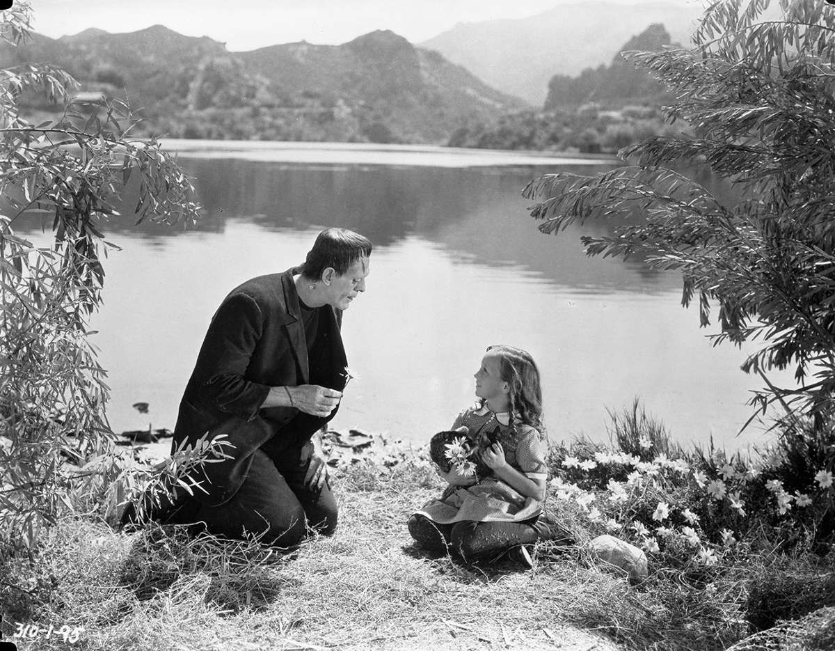 ANNI: Dafür hat man aber die Szene mit dem Kind komplett drin, und daran sieht man auch, dass das Monster eigentlich nicht böse ist. Die Blumen auf dem Wasser und dass er dann das Kind hineinwirft, weil er glaubt, es würde ebenfalls oben schwimmen, ist ein tragisches Missverständnis von einer Kreatur, die vom Leben nichts weiß. Keine Tötungsabsicht und keine Einsichtsfähigkeit. Und ansonsten wird diese Kreatur immer angegangen, zum Beispiel von diesem üblen Fritz – der dann auch tatsächlich, hört, hört, einen deutschen Namen hat – der außerdem so blöd war, das falsche Gehirn zu klauen, weil er das echte zerdeppert hat. Wenn du als Wissenschaftler solche Assistenten hast, brauchst du keine Gegner deiner Theorien mehr. Trotzdem wirkt das mit dem Verbrechergehirn seltsam und inkonsequent.