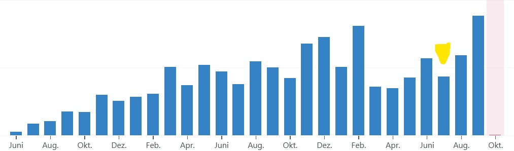 Im September ist es uns gelungen, den bisherigen Höchststand vom Februar dieses Jahres zu übertreffen. Unsere Zielmarke für den Oktober ist aber der Stand vom Juli, gemäß unserem Vorgehen, möglichst auf Dreimonate-Sicht eine Zunahme der Leserschaft zu erreichen, die einzelnen Monate sind uns nicht ganz so wichtig, schon gar nicht muss es jeden Monat einen neuen Höchststand geben. Das abgelaufene dritte Quartal 2020 zeigte den bisher zweitbesten Dreimonate-Schnitt nach Dezember 2019, Januar und Februar 2020, knapp vor der Addition aus den Zahlen vom November 2019, Dezember 2019 und Januar 2020.