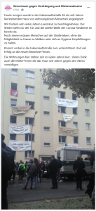 Das Titelfoto stammt von einer früheren Aktion der Mieter*innen im Haus, ein autorisiertes Foto vom heutigen Ereignis liegt uns noch nicht vor.