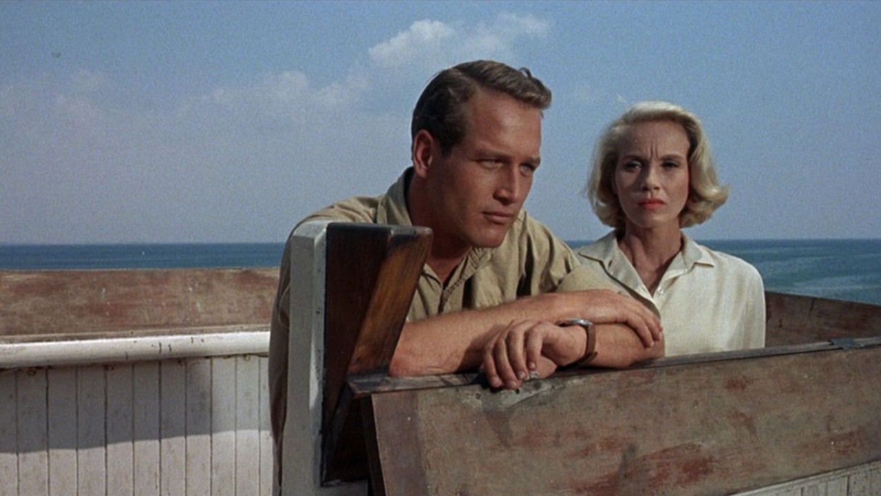 Dass wir diesem wuchtigen Film eine große Rezension widmen – oder es ganz bleiben lassen müssen, war schon lange klar, daher der lange Anlauf. Ich fasse hier einige weitere Aspekte kurz und abschließend zusammen: In der IMDb steht, Eva Marie Saint sei häufig als zu alt für ihre Rolle angesehen worden. Es ist in der Tat erstaunlich, um wieviel älter sie wirkt als ein Jahr zuvor in dem wundervollen „Der unsichtbare Dritte“, als Hitchcock ihr allerdings auch als einziger Person einen Weichzeichner zukommen ließ, was damals schon recht unüblich war. Deswegen hatte er sich später auch despektierlich darüber geäußert, wie andere Regisseur sie später weitaus weniger schillernd abgelichtet haben. Sie war aber nur ein Jahr älter als Paul Newman.