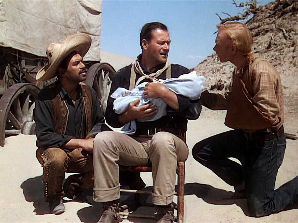Was kommt dabei heraus, wenn der höchstdekorierte amerikanische Filmregisseur (4 Oscars) auf die Idee kommt, einen ganz untypischen Film zu machen, der in typischer Kulisse spielt? Zunächst, die Idee ist nicht neu. Die Story von den drei recht sympathischen Bankräubern Robert, Pedro und William, genannt the Abilene Kid (John Wayne, Pedro Armendariz, Harry Carey, Jr.), die vor dem robusten Sheriff Perley Sweet (Ward Bond) in die Wüste fliehen, ist 1948 bereits zum vierten Mal verfilmt worden.