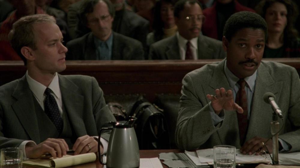 Es kommt durch das Zeigen solcher Umstände auch zu recht peinlichen Momenten, in „Philadelphia“, die nach Ansicht von US-Kritikern vor allem dazu dienen sollen, den Film einem Massenpublikum verständlicher zu machen, der Score von „Metacrictic“ beträgt denn auch angesichts des wichtigen Themas und der hochkarätigen Hauptdarsteller eher zurückhaltende 66/100 – allerdings auch deshalb, weil eine sehr negative Kritik dabei ist (10/100). Roger Ebert hat den Film, wie bei ihm häufig zu beobachten, vor allem wegen seiner Ambitionen hoch angesetzt (88/100): Wenn man auch AIDS gegenüber sehr negativ eingestellt ist, Tom Hanks und Denzel Washington können helfen, die Erkrankung verständlicher zu machen. Das müssen sie auch, denn es gibt einige Schwächen, die durch die herausragende Darstellung von Hanks und die überzeugende Leistung von Washington immerhin gemildert werden. Auch ich halte dem Film zugute, dass er 27 Jahre alt ist, und das ist in Anbetracht der Entwicklungen seitdem, wie der Legalisierung der gleichgeschlechtlichen Ehe in den USA und auch hierzulande, angesichts der Tatsache, dass nun jeder weiß, dass AIDS nicht durch die Luft übertragen werden kann oder durch Hautkontakt, doch eine lange Zeit. Es war damals ein neues und ziemlich heißes Thema und keine Überraschung, dass der Film in der Clinton-Ära entstand, in der sehr offen für mehr Politcial Correctness eingetreten und in der die Identätitspolitik heutigen Stils geboren wurde. Geplant wurde er wohl schon in der Amtszeit von George Bush senior, atmet aber ganz den hochherzigen und manchmal auch etwas zuckrigen Stil der nachfolgenden Jahre.
