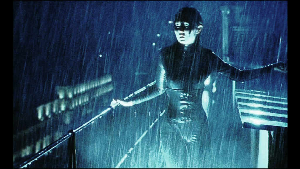 In der schönste Szene von „Irma Vep“, die beinahe aus dem übrigen Film herausgelöst ist, sehen wir Maggie nachts im Hotel, wie sie freiwillig diese enge, schwarze Catsuit überzieht, sich in ein anderes Zimmer schleicht und dort Schmuck stiehlt. Sie flieht aufs Dach und wird dort vom nächtlichen Regen geradezu zärtlich empfangen, genießt diesen Moment und wirkt in dem nassglänzenden Latexkostüm dabei genau so, wie es sich Regisseur Vidal wohl erträumt hatte. Doch der ist leider nicht anwesend, um diesen schönen Augenblick einzufangen, wird niemals Zeuge davon sein, wie sich die Frau auf ganz natürliche, von ihrer eigenen Anmut faszinierte Weise in das verwandelt, was die hölzerne Regie des Altfilmers nie zugelassen hätte.