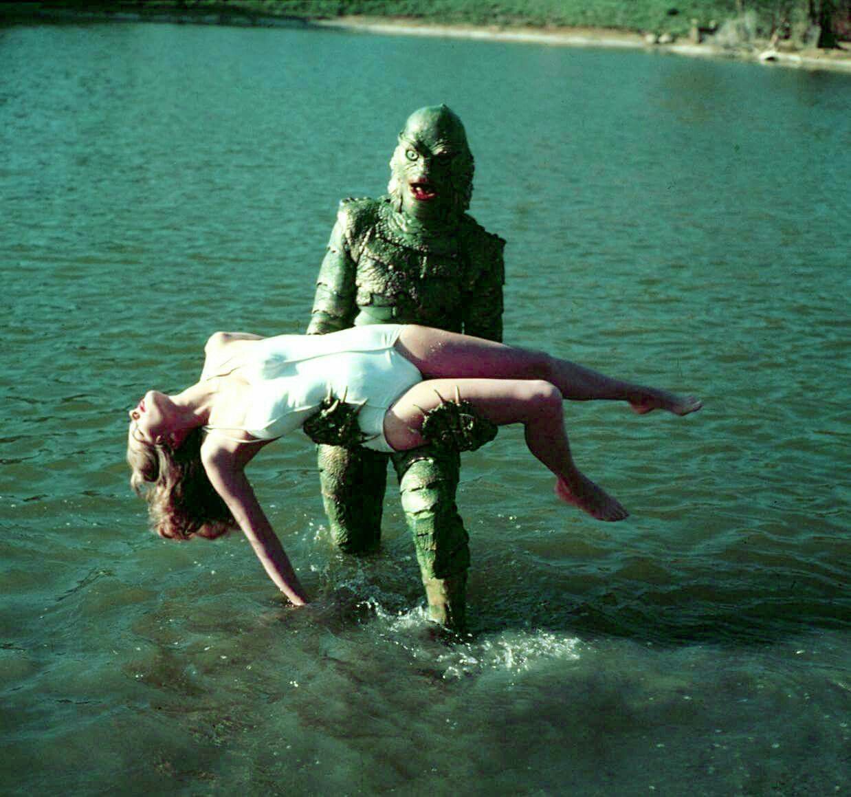 Eine Forschungsexpedition stößt in einem Seitenarm des Amazonas, der „Schwarzen Lagune“, auf einen „Kiemenmenschen“, halb Meeres-, halb Landlebewesen, der schnell zu einer tödlichen Bedrohung für die Expeditionsteilnehmer wird. (1)