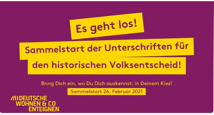 Jeder auf und außerhalb von FacebookAm 26. Februar ist Sammelstart für die zweite Phase unseres Volksbegehrens. Dann haben wir vier Monate Zeit, um mindestens 175.000 gültige Unterschriften zu sammeln. Es geht endlich los. Kommt zum Sammelauftakt am Gecekondu / Kottbuser Tor Am 26. Februar findet um 11:30 unser Sammelauftakt am Gecenkondu statt. Wir wollen mit euch in das ereignisreiche Wahljahr starten und läuten die viermonatige 2. Sammelphase unseres Volksentscheides ein.